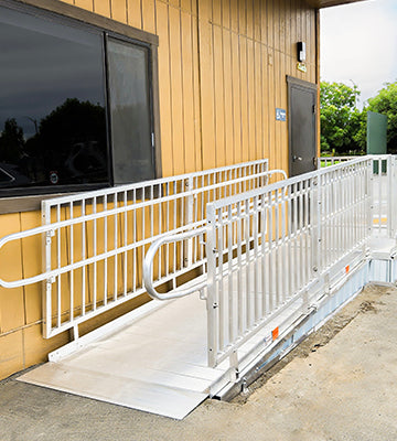 ADA-compliant wheelchair ramps must have a 1:12 slope (1 inch rise per 12 inches run), 36-inch minimum width, non-slip surfaces, and handrails if over 6 inches high. Landings every 30 feet provide rest areas. Our aluminum ramps meet these standards for safe home or business use.