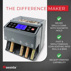 Description Cassida C200 Coin Sorter, Counter and Roller The Cassida C200 is a powerful all-in-one coin counter, sorter, and wrapper designed to streamline your coin handling process with speed and...
