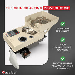 Description Cassida C500 Compact & Portable Coin Counter/Off-Sorter - Tan/Black The Cassida C500 Coin Counter is a high-capacity, high-speed solution built for serious coin counting needs, all while offering the...