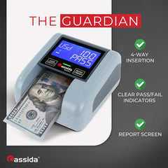 Description Cassida Quattro Counterfeit Detector The Cassida Quattro Counterfeit Detector delivers industry-leading counterfeit detection with its patented Cassida "M" Algorithm, offering exceptional accuracy while maintaining the lowest false reject rate...