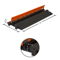 Description Elasco LiteGuard Three-Channel, 1.25" Cable Guard Three 1.25" square channels. Light-duty wire/cord protector. Black base with orange lid. Reduce vehicle drive-over damage to electrical cables and wires and eliminate...