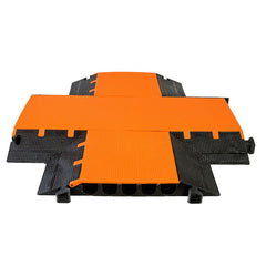 Description Elasco MightyGuard Five-Channel, 2" Cable Guard Five 2" rounded channels. Heavy-duty hose/cable protector. Black base with orange lid. Reduce vehicle drive-over damage to electrical cables, hoses and pipes while...