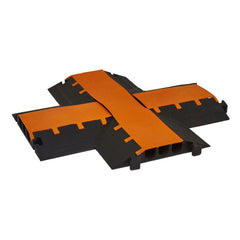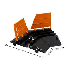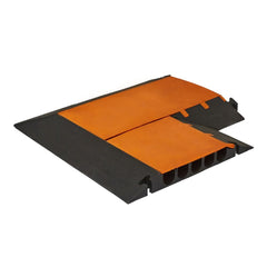 Description Elasco MightyGuard Two-Channel, 2" ADA Cable Guard Two 2" rounded channels. Heavy-duty hose/cable protector with ADA-compliant ramps on either side. Black base with orange lid. Reduce vehicle drive-over damage...