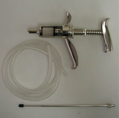 Vetamatic Syringe. A handy, sturdy automatic multidose syringe. Plastic valves and washers reduce swelling problems.