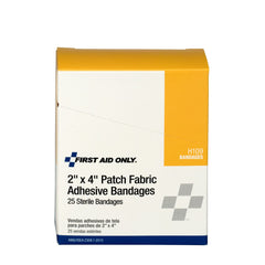 Description First Aid Only 2" x 4" Fabric Adhesive Bandages, 25 per Box Our plastic adhesive bandages are ideal for minor cuts, abrasions and puncture wounds. Made with a pliable...