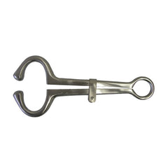 Spring-loaded lead closes in an- animal's nose. Useful in moving or transporting animal. Nose piece measures 2³ x 3³ across the center dia. Overall 5³L.