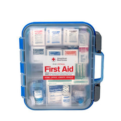 Description First Aid Only 50 Person ANSI A+ Clear Front Plastic First Aid Kit The Red-Cross branded 50-person ANSI A+ First Aid Kit in a plastic case contains 216 essential...