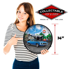 1969 SS Camaro at Gulf Station, 14" LED Wall Clock