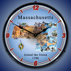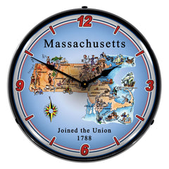 DescriptionState of Massachusetts 14" LED Wall ClockWhen was the last time you found a neon clock with a new design in it? Iām sure itās been a long time. If...