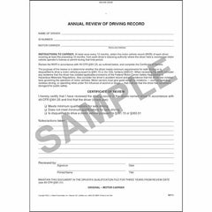 DescriptionAnnual Review of Driving Record - Stock, Snap-Out, 2-Ply, Carbonless, 8-1/2" W x 11-3/4" LEnsure compliance with Section 391.25 by documenting annual driving record reviews with this easy-to-use form. The...