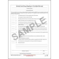J. J. Keller Alcohol & Drug Employee's Certified Receipt