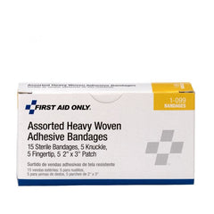 Description First Aid Only 7/8"x1.5" Heavy Woven Fabric Bandages, 50 Per Box Our heavy woven bandages are ideal for minor cuts, abrasions and puncture wounds. They are ventilated to help...