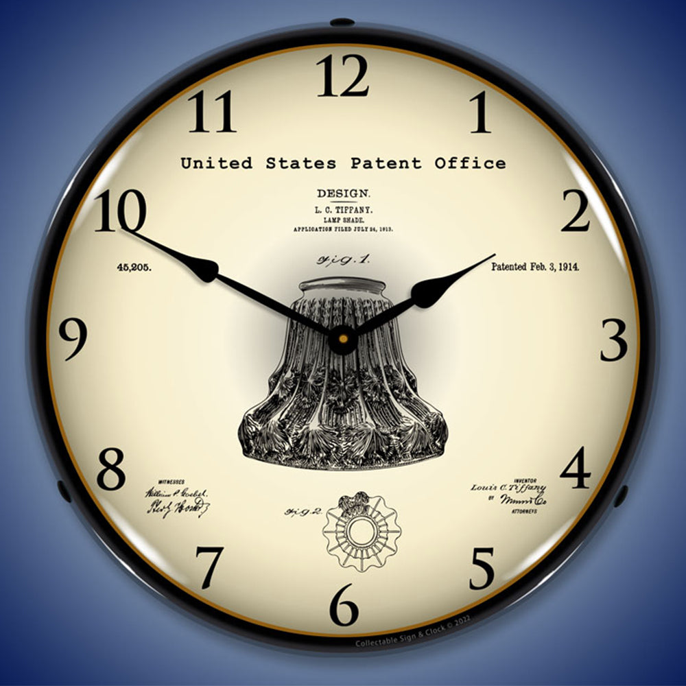 1914 Louis Comfort Tiffany Lamp Shade Patent 14" LED Wall Clock