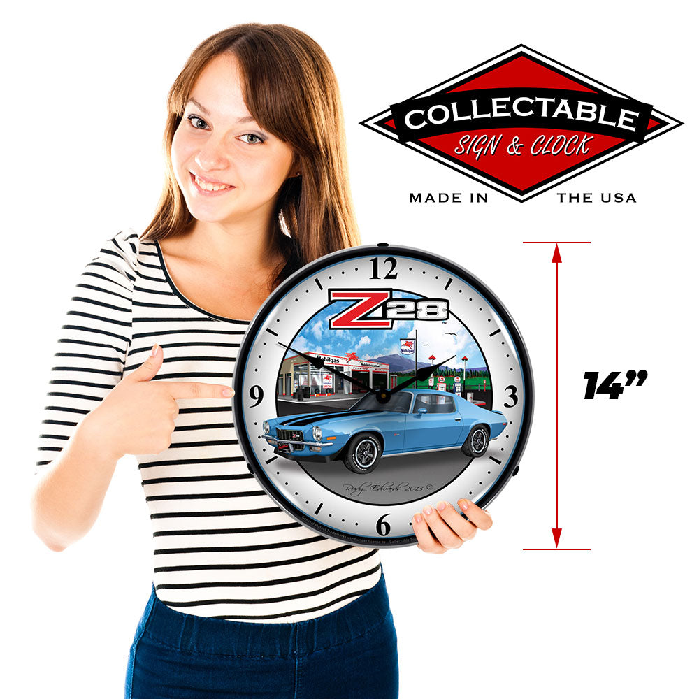 1970 Z28 Camaro at Mobilgas Station 14" LED Wall Clock