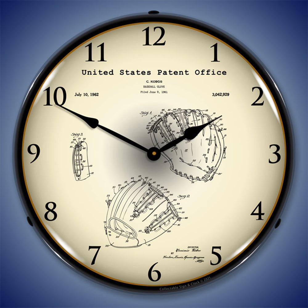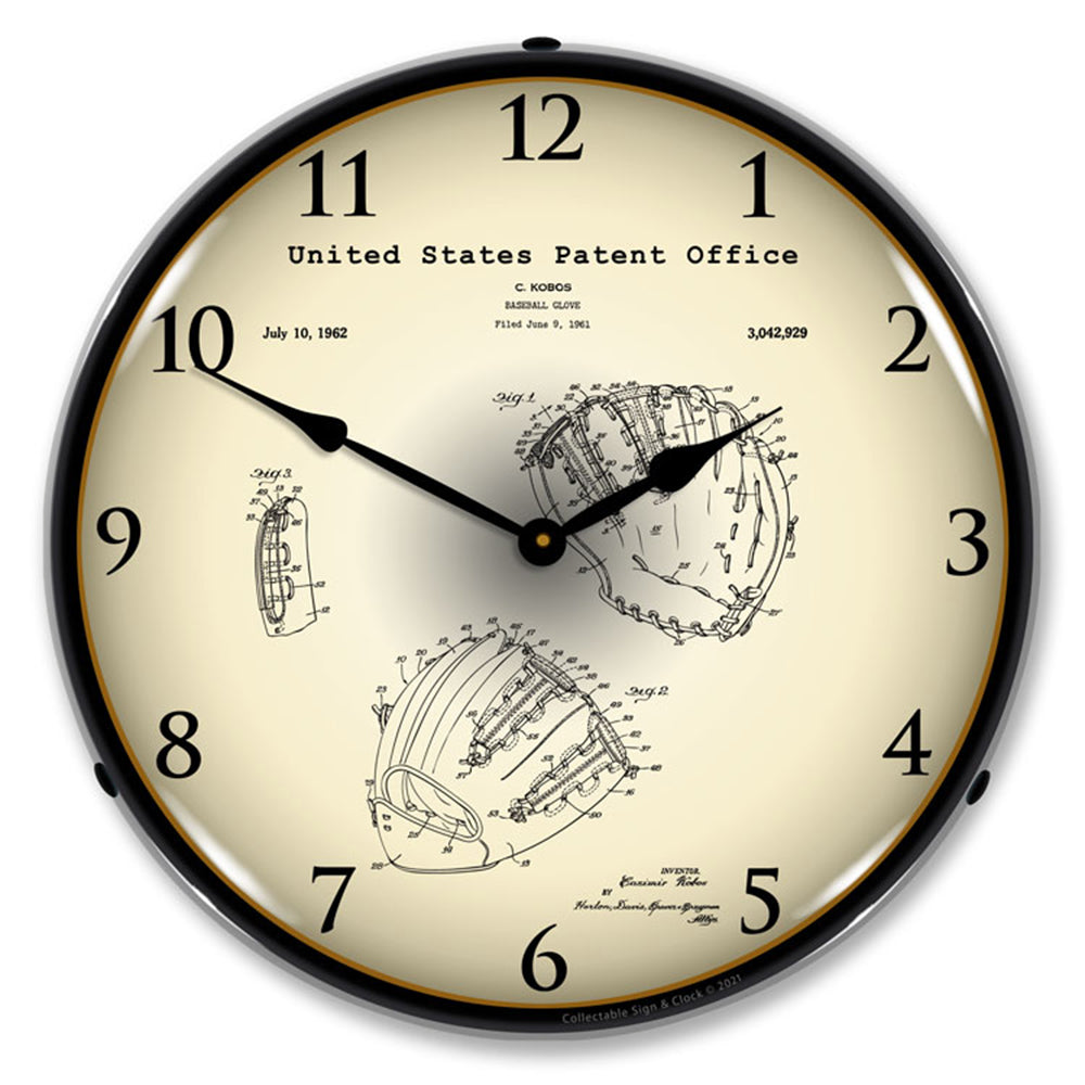 Baseball Glove 1962 Patent 14" LED Wall Clock