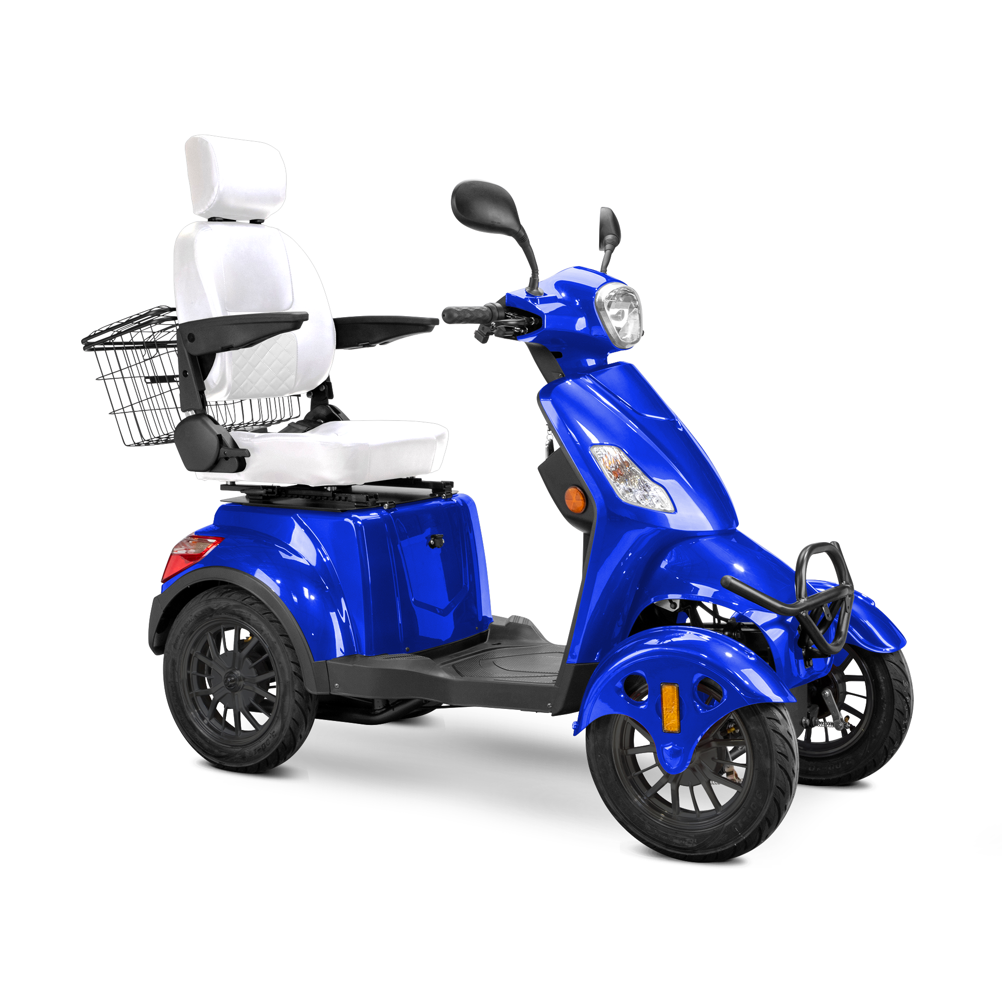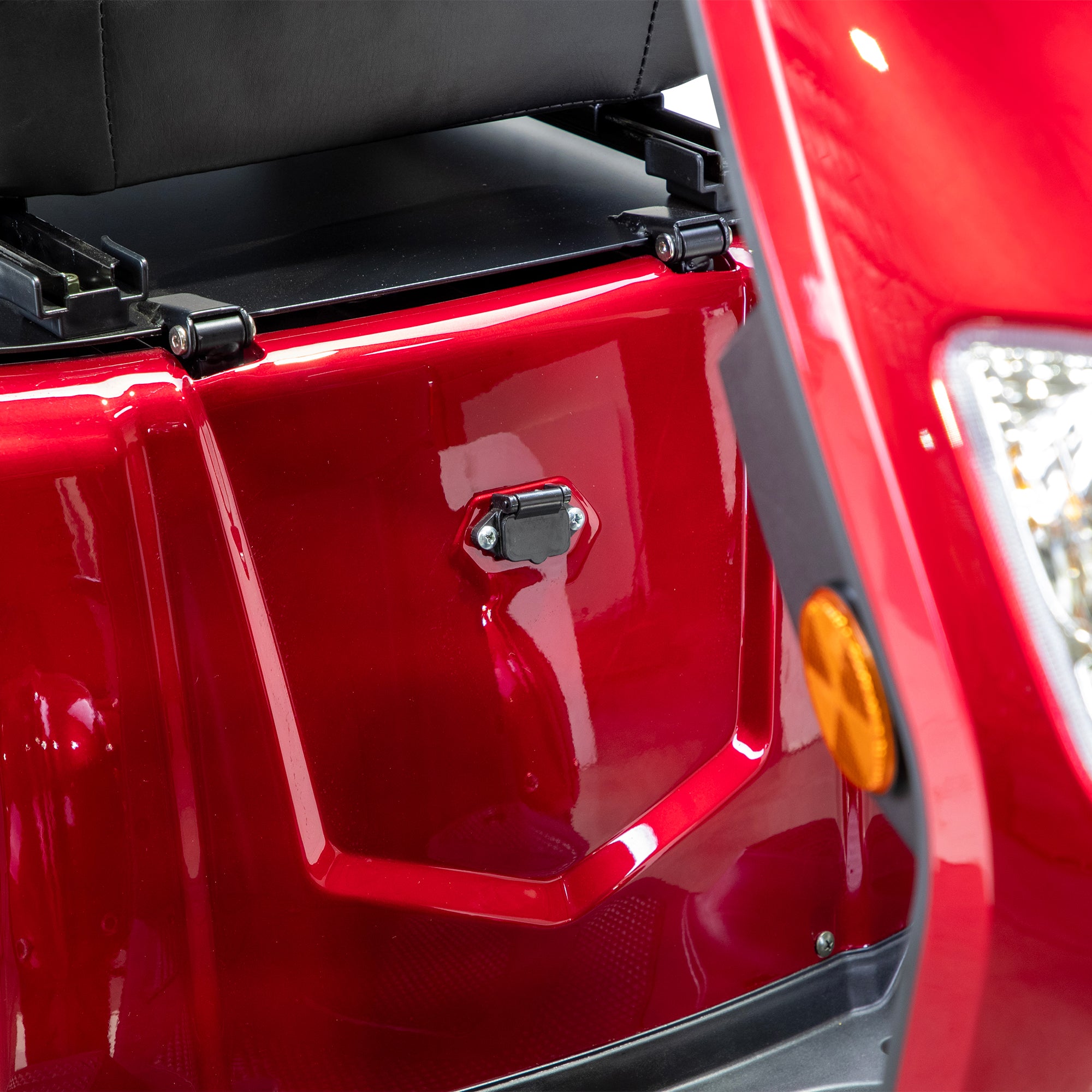 - Locking under-seat compartment and rear basket for secure storage.