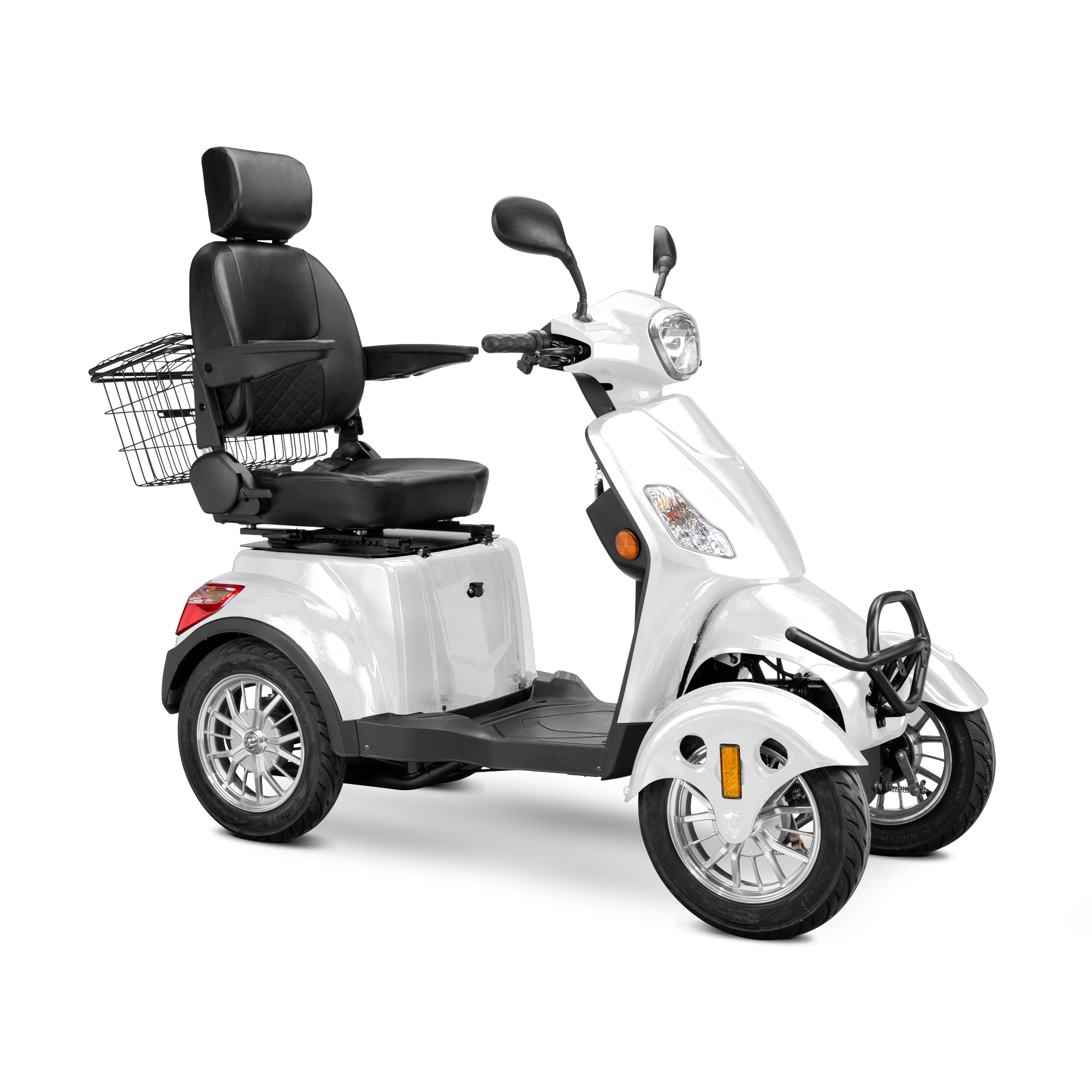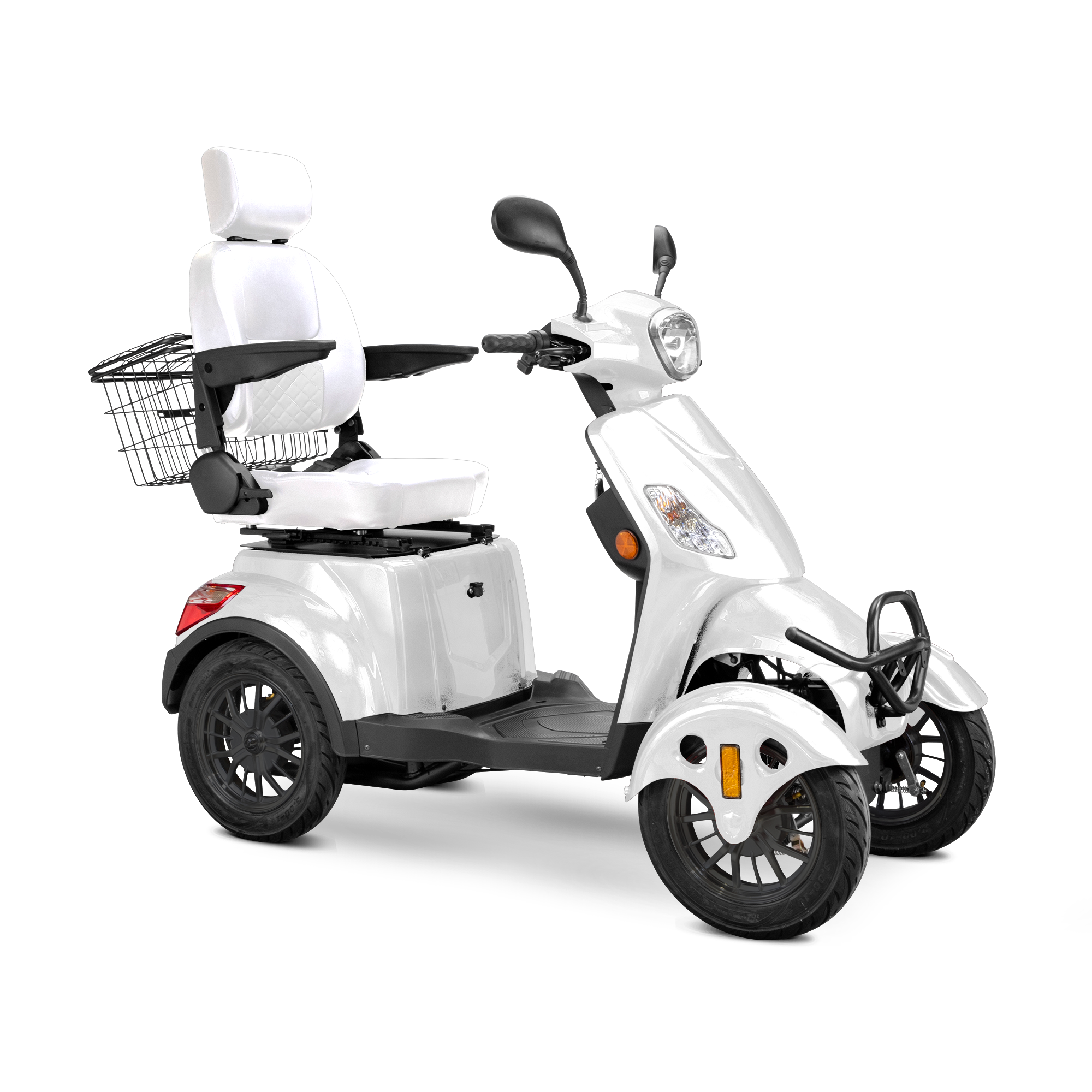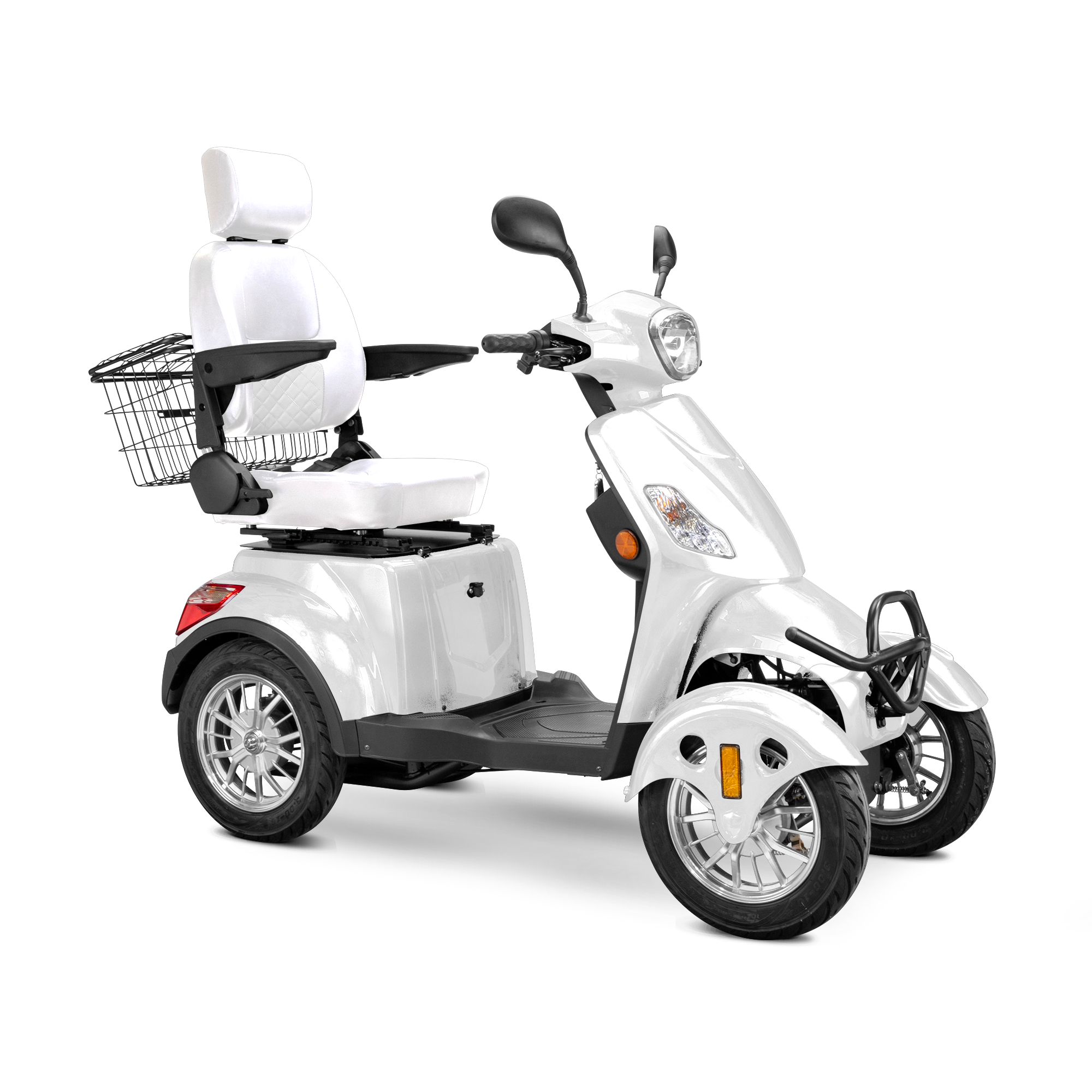 The Bespoke Prestige 4-Wheel Mobility Scooter is a masterclass in modern comfort, safety, and performance. Designed to elevate your riding experience, it features a powerful 600-watt motor that reaches speeds of up to 15 mph and delivers an impressive 35-mile range on a single charge. Its four-wheel configuration enhances stability, while the fully adjustable diamond-stitched seat offers premium support and comfort for long rides. Whether you're navigating city streets or cruising through your neighborhood, the Prestige ensures a smooth and enjoyable journey every time.