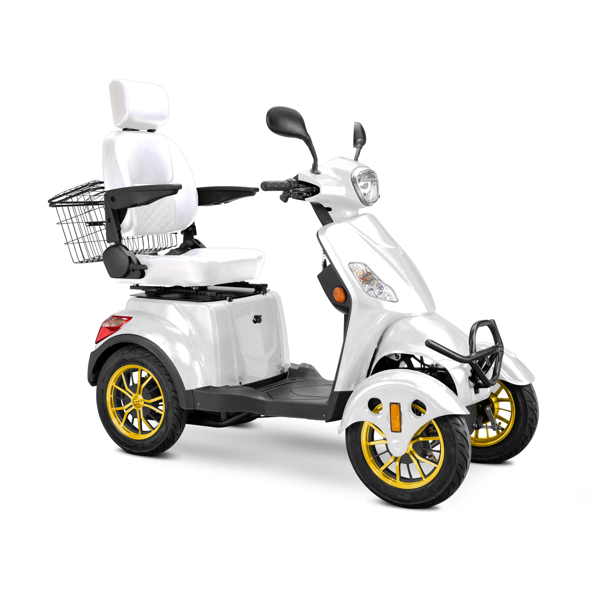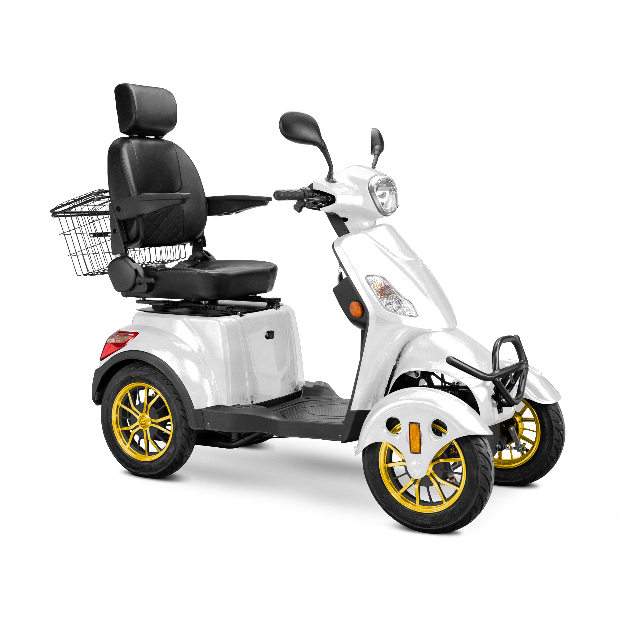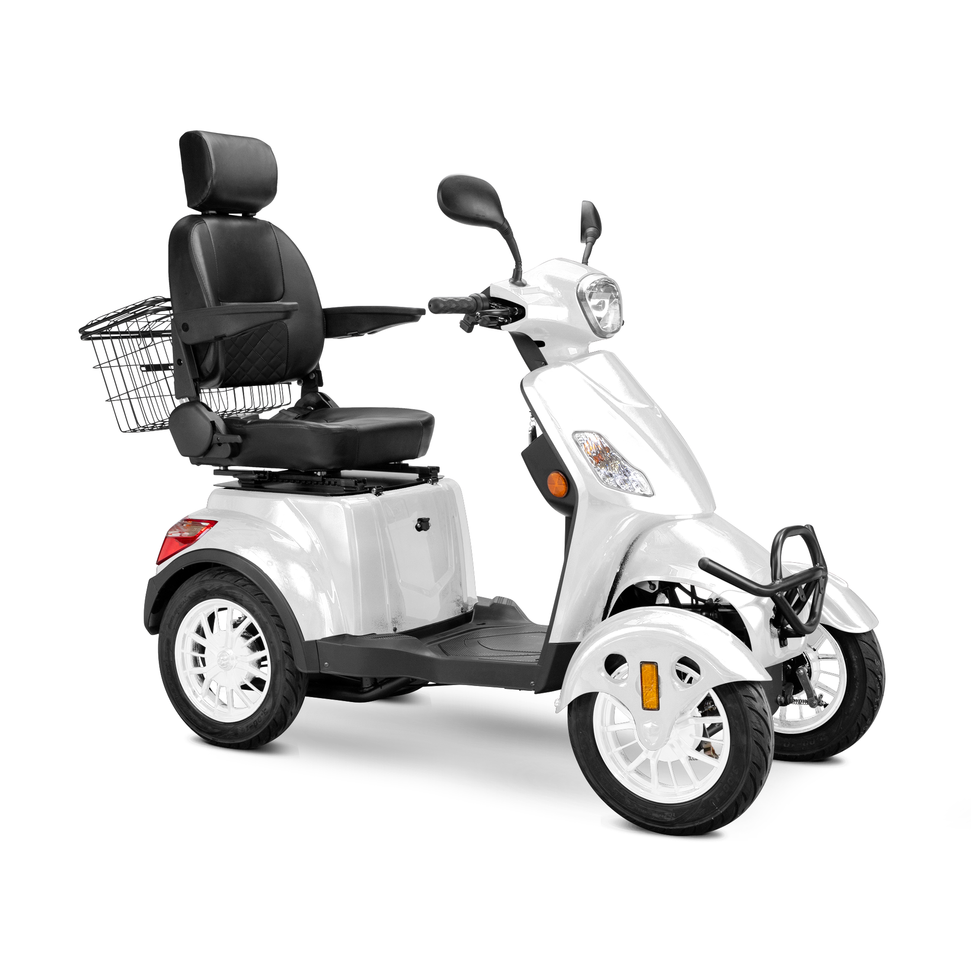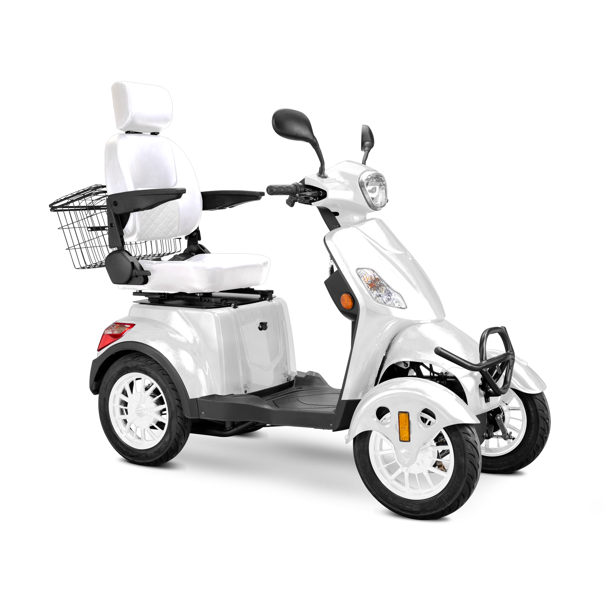 The Bespoke Prestige 4-Wheel Mobility Scooter is a masterclass in modern comfort, safety, and performance. Designed to elevate your riding experience, it features a powerful 600-watt motor that reaches speeds of up to 15 mph and delivers an impressive 35-mile range on a single charge. Its four-wheel configuration enhances stability, while the fully adjustable diamond-stitched seat offers premium support and comfort for long rides. Whether you're navigating city streets or cruising through your neighborhood, the Prestige ensures a smooth and enjoyable journey every time.