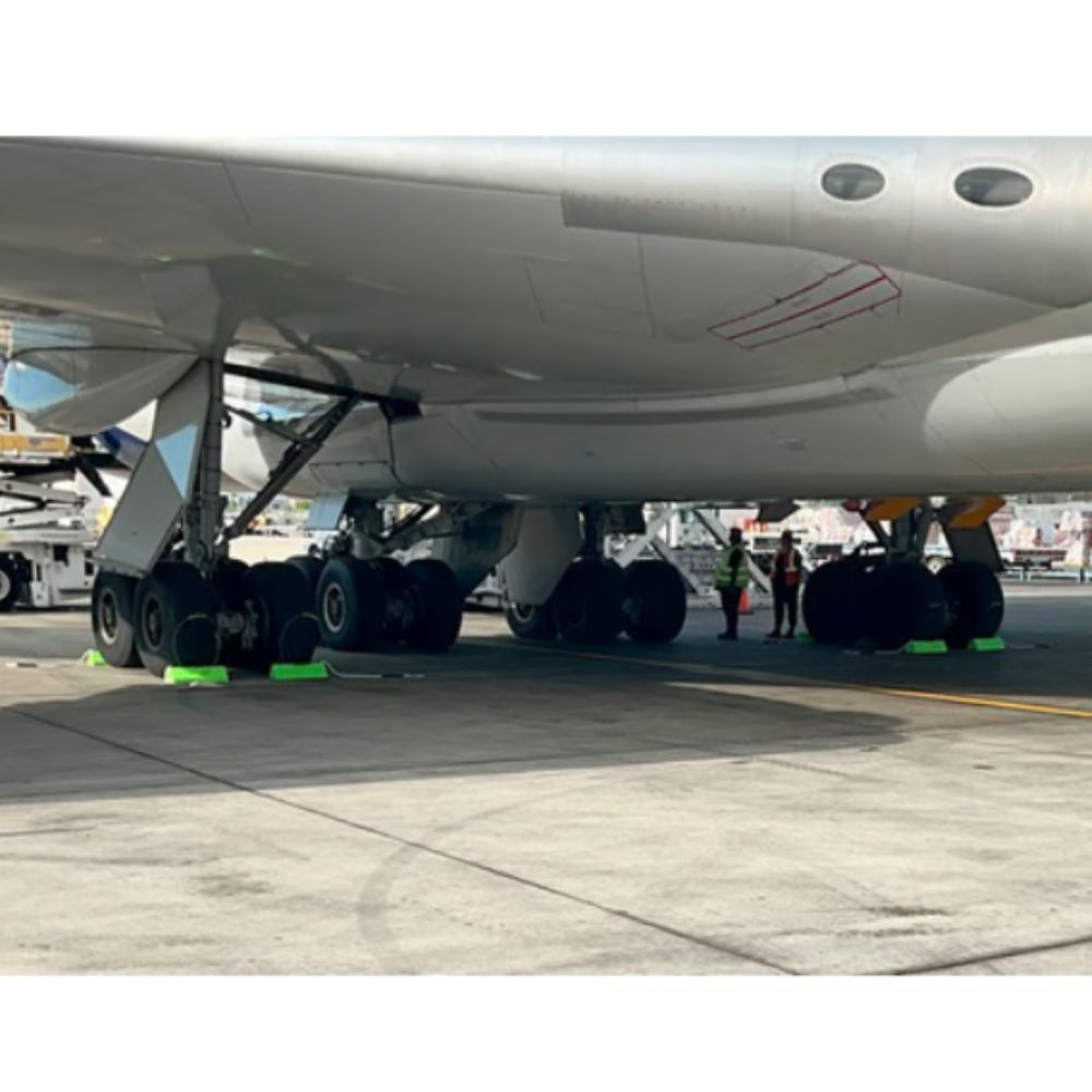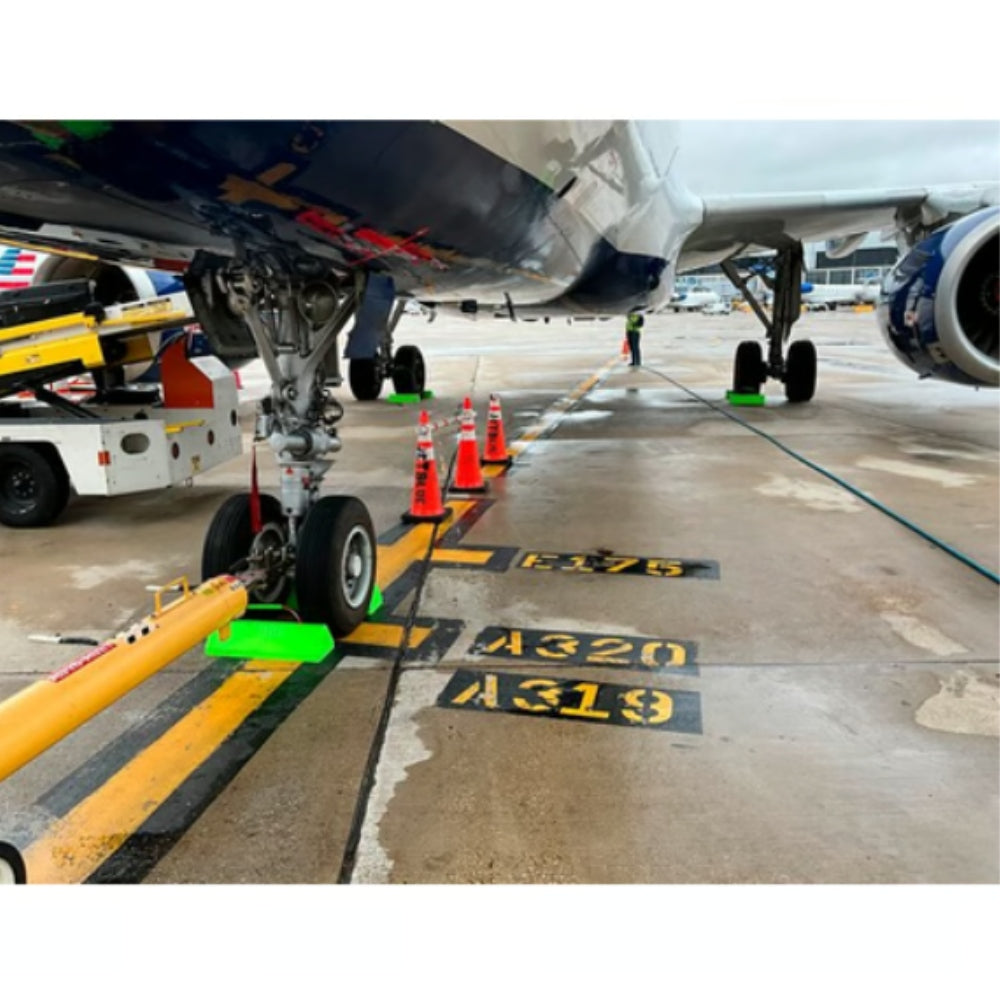 The 24-inch SafeRay™ Hi-Viz Aircraft Chock (model CAC24) is designed for narrow and wide-body aircraft. Made from durable urethane, it’s lightweight, highly visible day or night, and built to withstand harsh conditions and aircraft fluids. Includes a cable handle and urethane grip for easy handling.