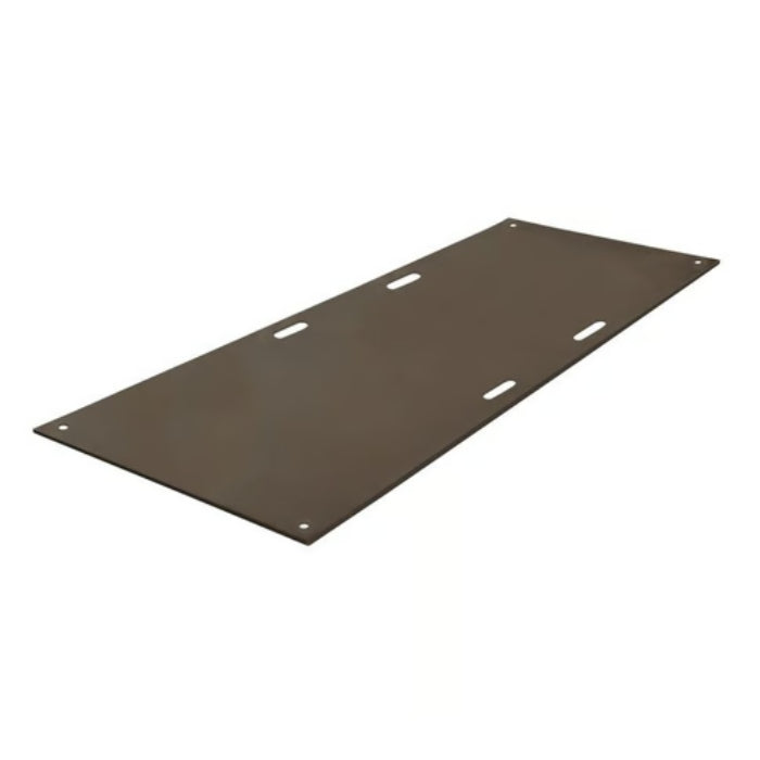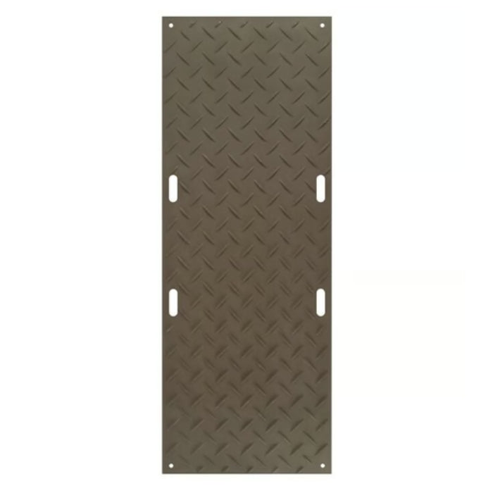 A premium ground protection mat made from 100% recycled HDPE, featuring one smooth side for sensitive surfaces, diamond tread for traction, and built-in hand holes for easy handling. Supports up to 120 tons and flexes to follow uneven terrain. Ideal for construction, landscaping, and event flooring.