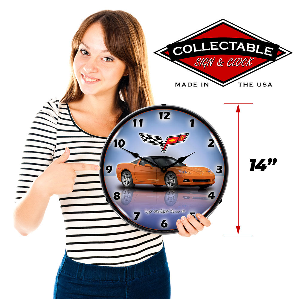 Corvette C6 Inferno Orange 14" LED Wall Clock