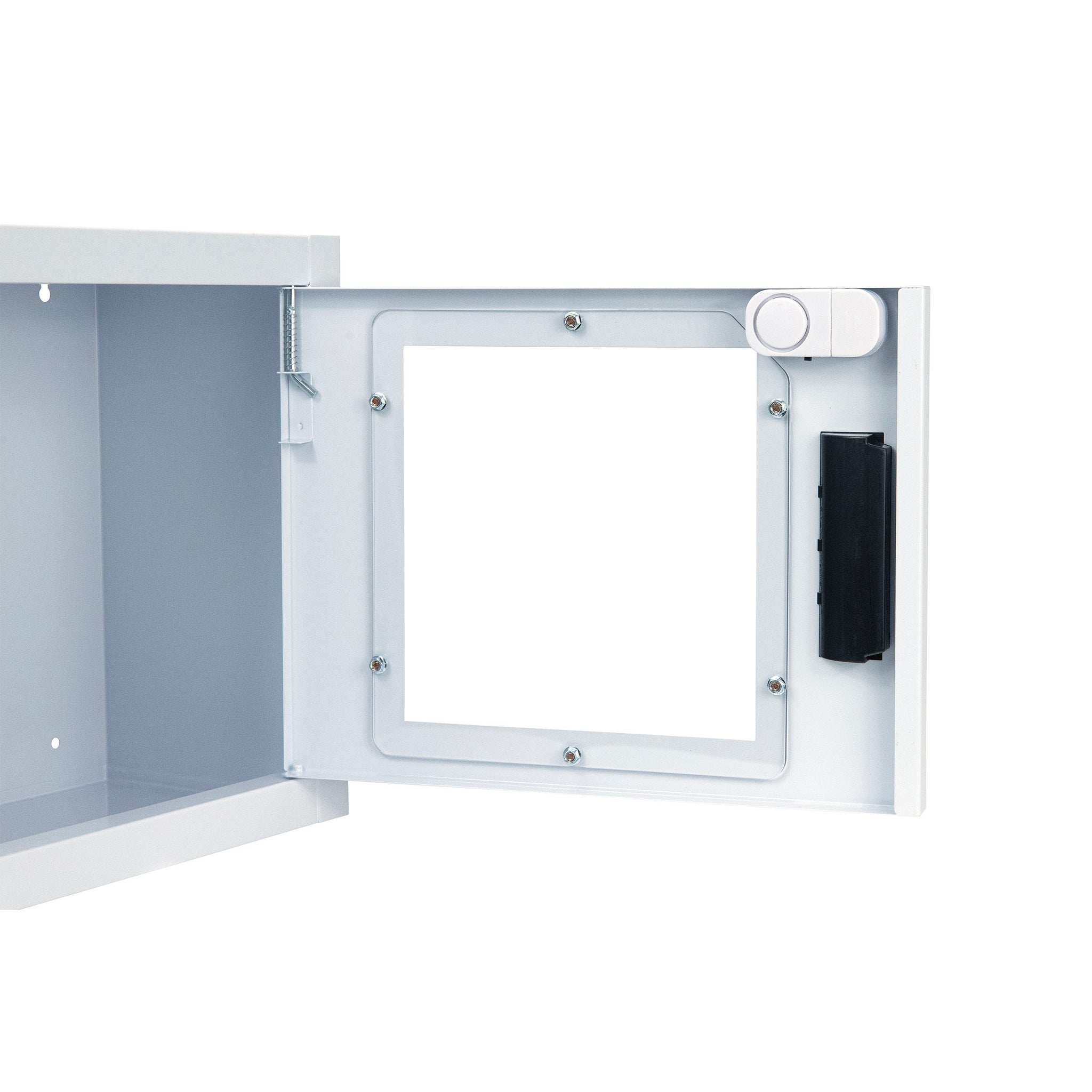 The cabinet is equipped with a high-decibel keyed alarm system that triggers an 80-120dB siren immediately upon the magnetic door seal being broken. The "keyed" feature allows authorized personnel to deactivate or test the alarm without removing the battery, which is essential for routine monthly maintenance and AED inspections. The system is powered by a standard 9V battery, which is included with the unit, ensuring that the cabinet is ready for deployment immediately upon mounting. This self-contained audio alert system provides critical situational awareness during an emergency while serving as a powerful deterrent against equipment tampering or theft.