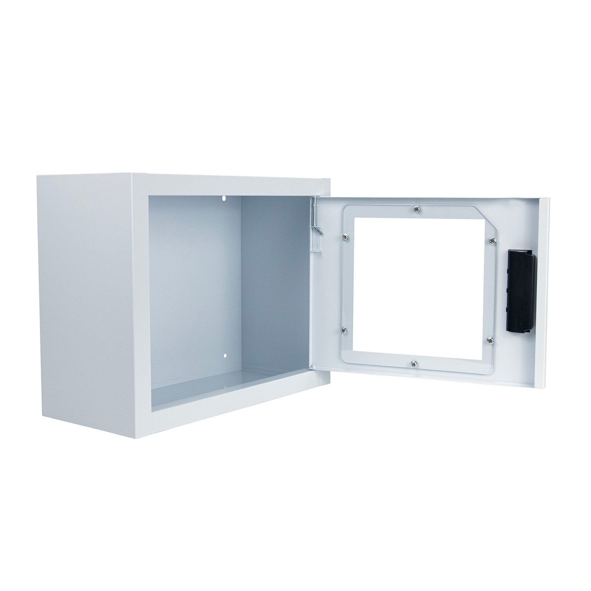 Constructed from industrial-grade 0.8mm cold-rolled steel, the CB3-Sn is built to withstand the daily rigors of institutional use. Its surface-mount design and square-corner profile maximize internal storage capacity while maintaining a narrow depth, ensuring it fits easily into hallways or small workstations. The universal interior is precision-sized to hold smaller-format AEDs including models from Philips, HeartSine, and Defibtech ensuring your equipment remains protected from dust and environmental factors while remaining visible through the scratch-resistant acrylic window.