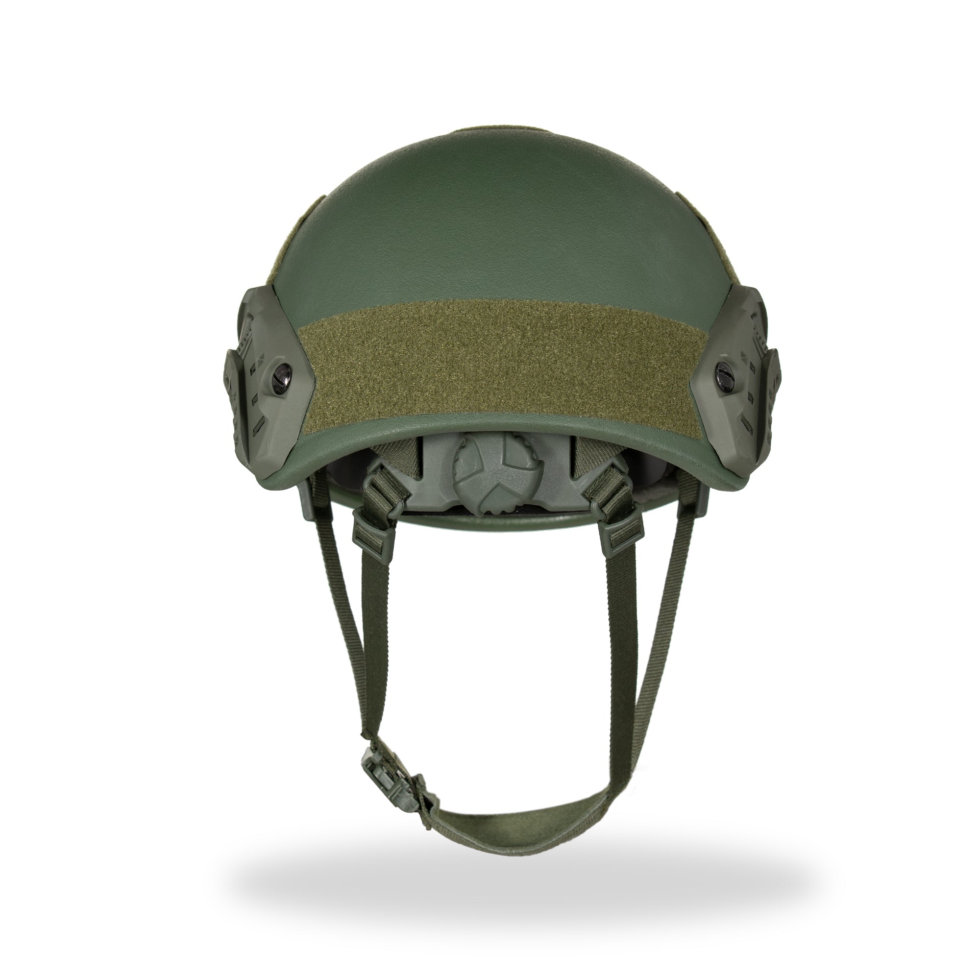 The High-Cut Ballistic Helmet from EDI-USA offers advanced head protection for tactical operations. Tested to Level III-A and HG2 standards, it resists ballistic threats up to .44 Magnum and fragmentation per STANAG 2920. Designed for comfort and versatility, it includes adjustable memory foam padding, a ratchet-fit system, and mounts for night vision and communication gear. Available in black, green, or tan (special order).