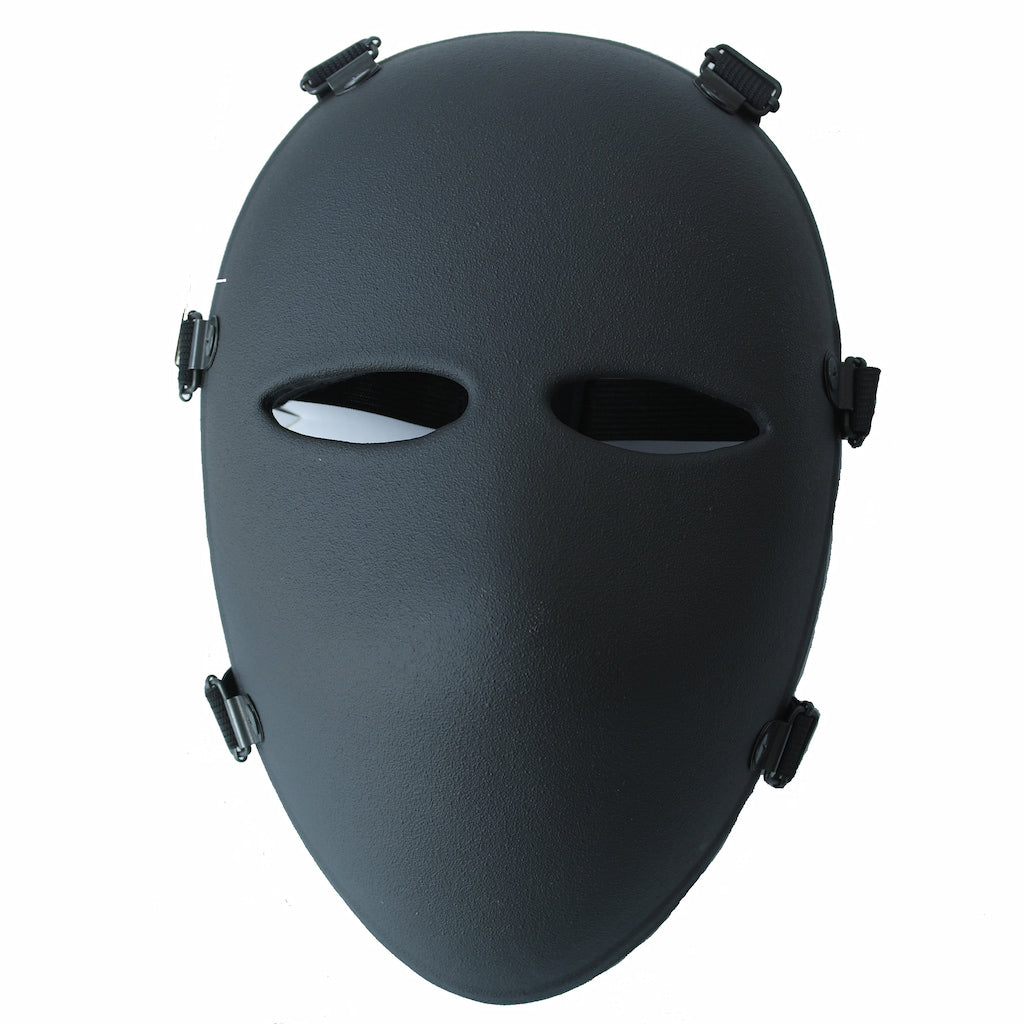 The Full Bullet-Resistant Face Mask by EDI-USA is an advanced ballistic solution designed to protect the userβs face from threats up to Level III-A. Made from strong ballistic materials, it features a six-point adjustable suspension system for a secure and customizable fit. Lightweight and comfortable, this mask includes two eye openings for clear vision and can be adjusted to accommodate gear like balaclavas or radios.