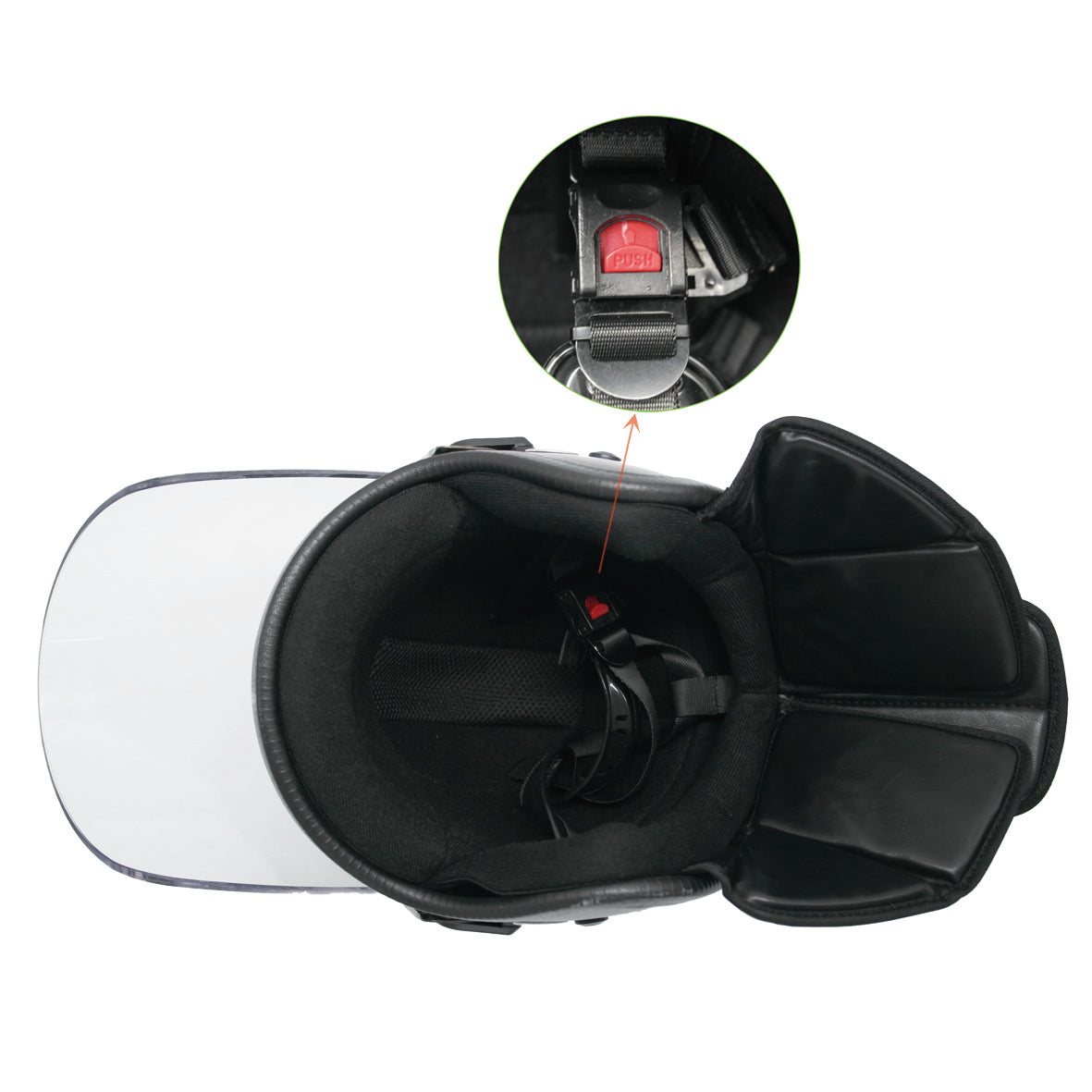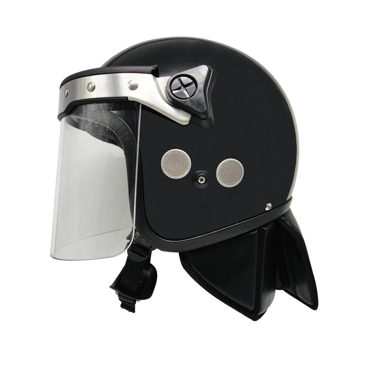 The PROTEC-X Riot Helmet is one of the most trusted helmets for riot control operations. Made from durable polycarbonate, it meets NIJ 0104.02 anti-impact standards and includes a thick, transparent visor that can be worn up, down, or partially adjusted. Features a fixed neck guard, quick-release system, and comes with a storage bag. Optional tinted visor and custom colors available.