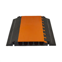 Five 2" rounded channels. Heavy-duty hose/cable protector. Black base with orange lid.