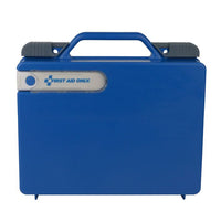This innovative first aid kit has an integrated safety flashlight built into the backside of the case which can be removed for treating a wound at night or in a dimly lit area. The 100-Lumen safety light has a built-in magnet for mounting to a steel surface and a whistle to call for help. The clear front cover first aid kit allows users to see supplies inside and know when supplies are low. The organized compartments and tilt down shelf makes it easy to find supplies in a hurry. The case has easy to use slide latches and an ergonomic handle for portability. The 342 pieces treat up to 50 persons. First Aid Kit Meets OSHA regulations.