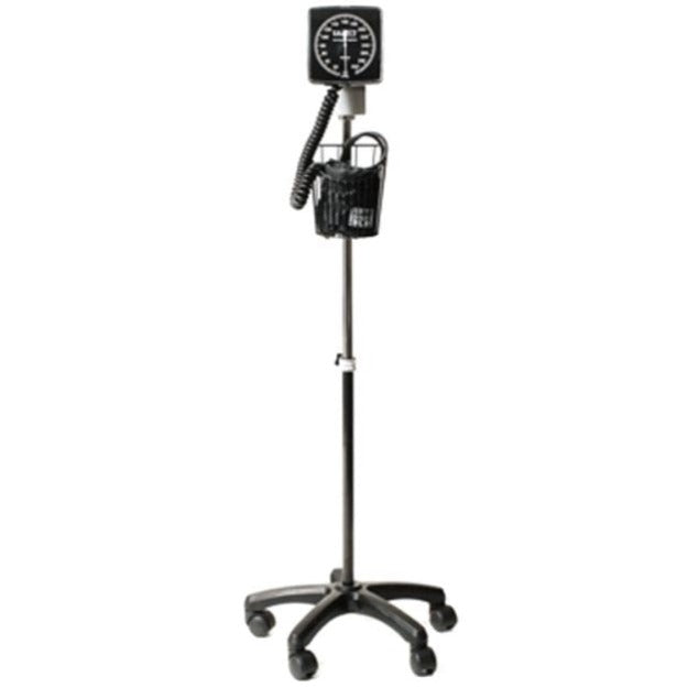 Graham-Field Mobile Aneroid Sphygmomanometer is a device used to measure blood pressure. This mobile height-adjustable aneroid features a large six inch easy-to-read gauge mounted on a mobile stand which includes a storage basket. Accumax nylon cuff includes eight inches coiled tubing.