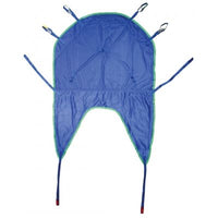 Universal slings should be used for residents that are totally or partially dependent, non-weight bearing, or bariatric. Those who have limited head control should use a universal sling with head support. The large opening accommodates toileting. Mesh slings should be used for bathing. LUMEX Universal slings have four or six connection points and can be used with 2-, 4-, or 6-point spreader bars.