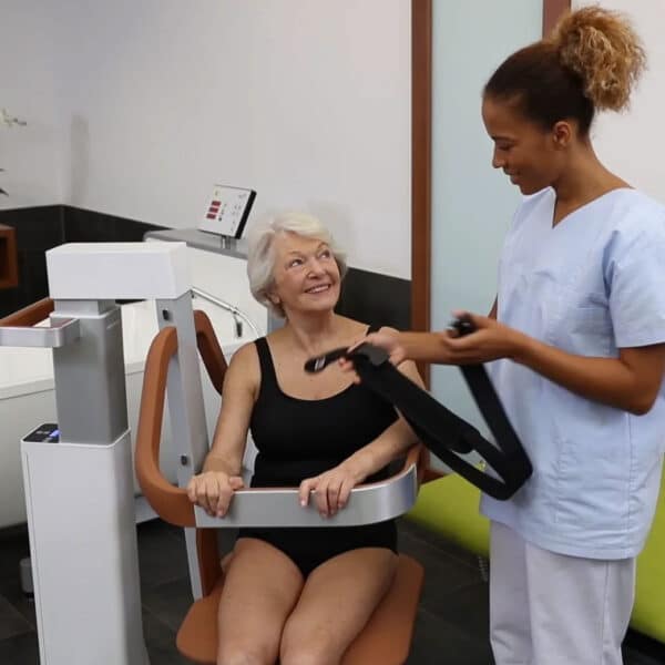 The EVE! Shower and Bath Lift is a battery-powered, waterproof chair designed to help caregivers safely and comfortably assist individuals during bathing. With its ergonomic design, padded seat, and easy-to-use controls, EVE! ensures a smooth and dignified bathing experience. It fits seamlessly with most care bathtubs and offers optional features like an integrated digital scale for added convenience.