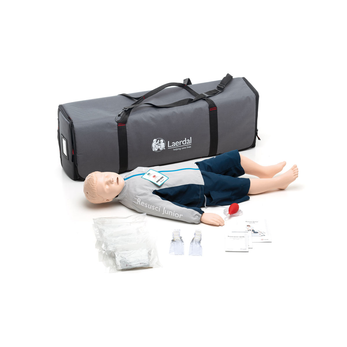 The Heartsmart Resusci Junior QCPR is a full-body child manikin designed to deliver realistic, high-quality CPR training for children, simulating the physical characteristics of a 5-year-old. Perfect for first responders, educators, and healthcare professionals, it features anatomically accurate landmarks, airway resistance, chest rise, and optional SkillGuide feedback for real-time performance monitoring. The manikin helps learners develop proper CPR techniques with an educational focus on skill mastery and confidence-building. Convenient to transport and maintain, it includes a full set of accessories and a durable soft carry case for on-the-go training sessions.