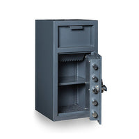 Constructed with solid steel plates welded with continuous welds for all parts of the safe. B Rated and designed for use with armored car services, restaurants, chain stores, convenience stores, and government applications.