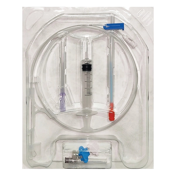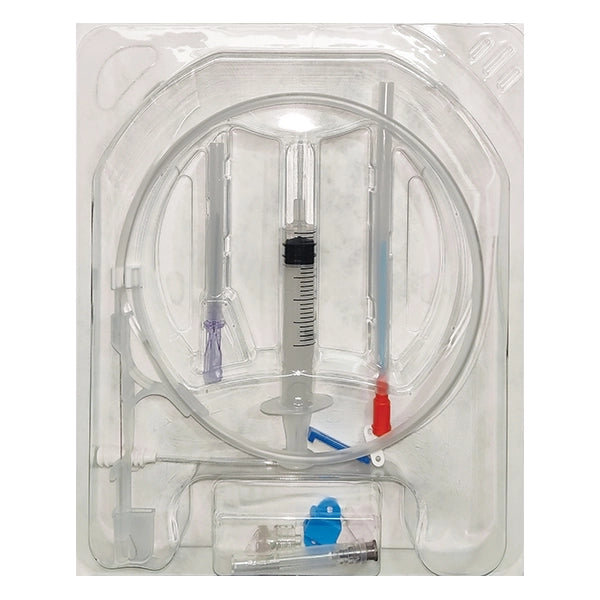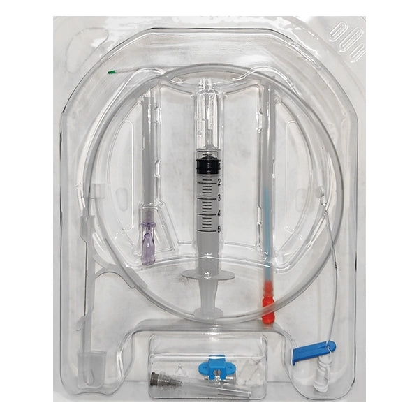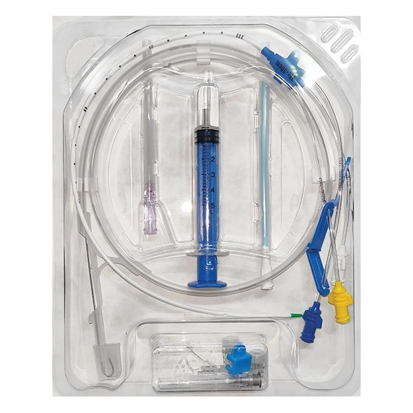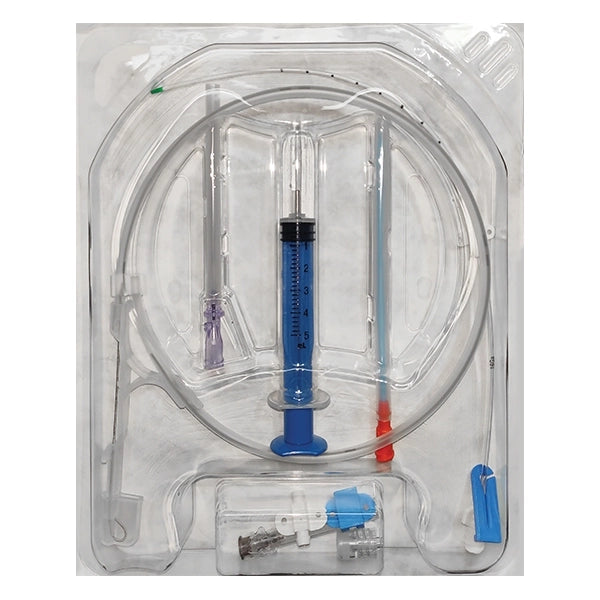 - Complete kit includes catheter, guide wire, introducer needle, vessel dilator, caps, syringe, and instructions.