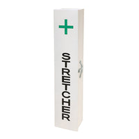 The Easy-Fold Stretcher Case by Junkin Safety Appliance Company is designed to be used with the Junkin Easy-Fold Aluminum Pole Stretcher. It is constructed of 20 gauge steel and finished in white enamel, and it may be wall mounted or it has a handle for easy carrying.