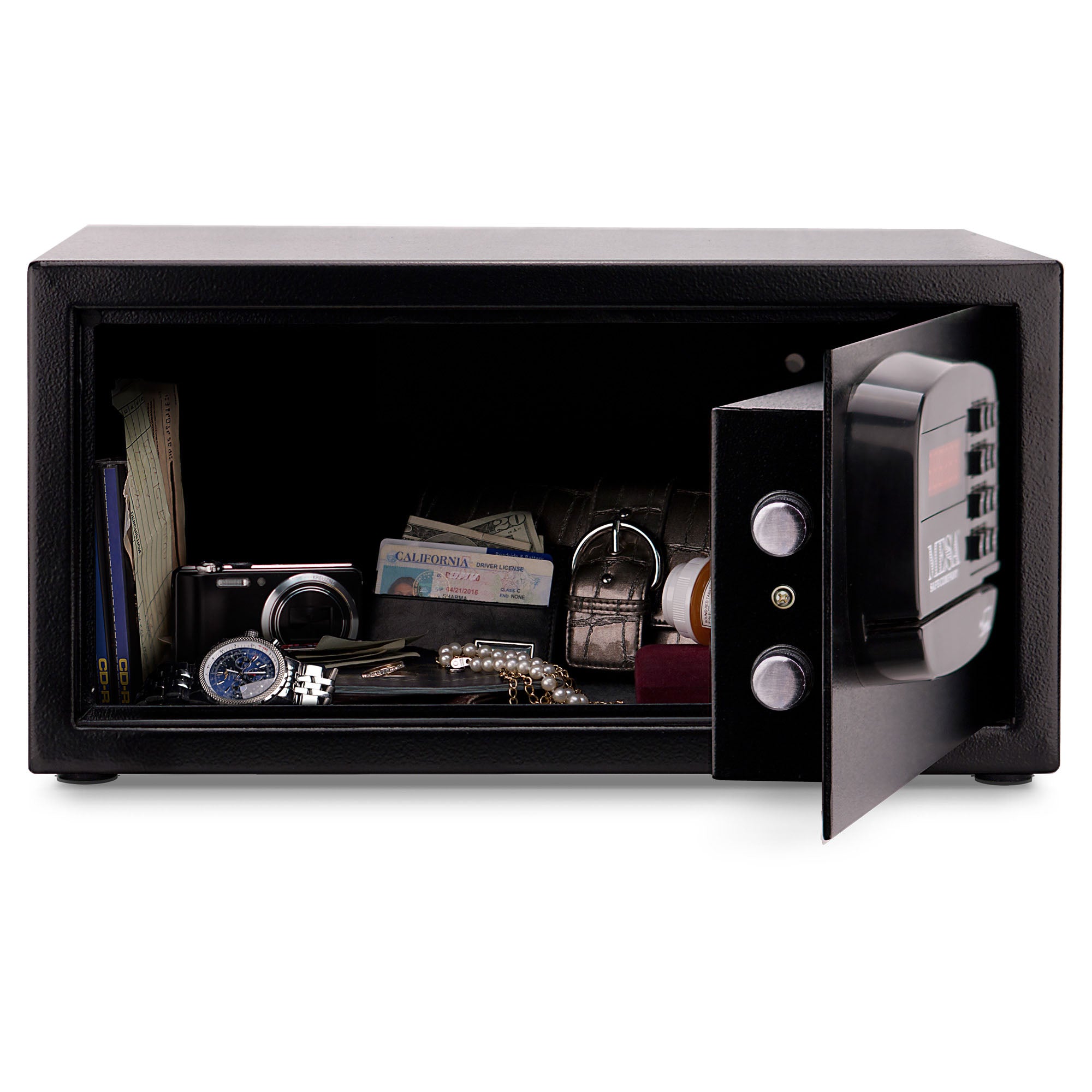 The hotel and residential safes provide users with easy and simple ability to access their belongings. They will adequately secure a variety of valuable items including laptops, jewelry, cameras, or documents. The perfect companion for dorms and off-campus living where protection and securing your essentials such as textbooks, calculators, paperwork, and other expensive items need to be locked up. Keep your every-day items protected from theft and burglary.