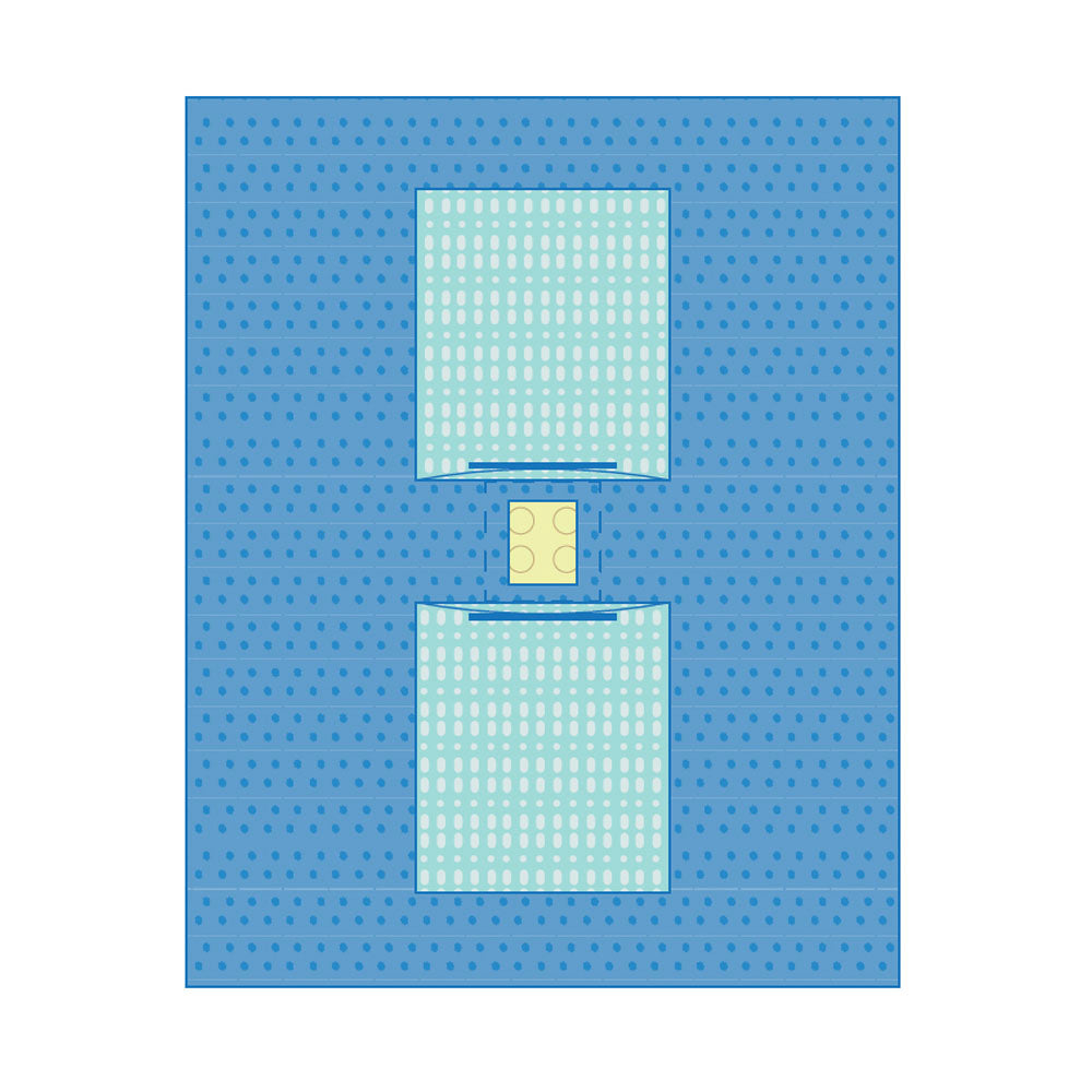 - Centered adhesive incise film ensures drape remains fixed and maintains sterility at the surgical site