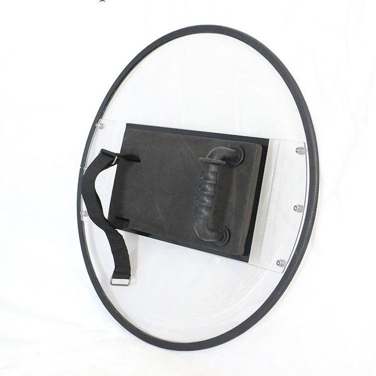 Round Anti-Riot Shield is built for close-combat and urban operations. Made from strong polycarbonate with 95% light transmission, this 23” shield offers superior impact resistance and quick maneuverability. Features a reinforced border for added strength, a one-arm strap, and a handle system for secure grip. Compatible with FoxFury® tactical lights and available with custom inscriptions. Optional enhanced black border available.