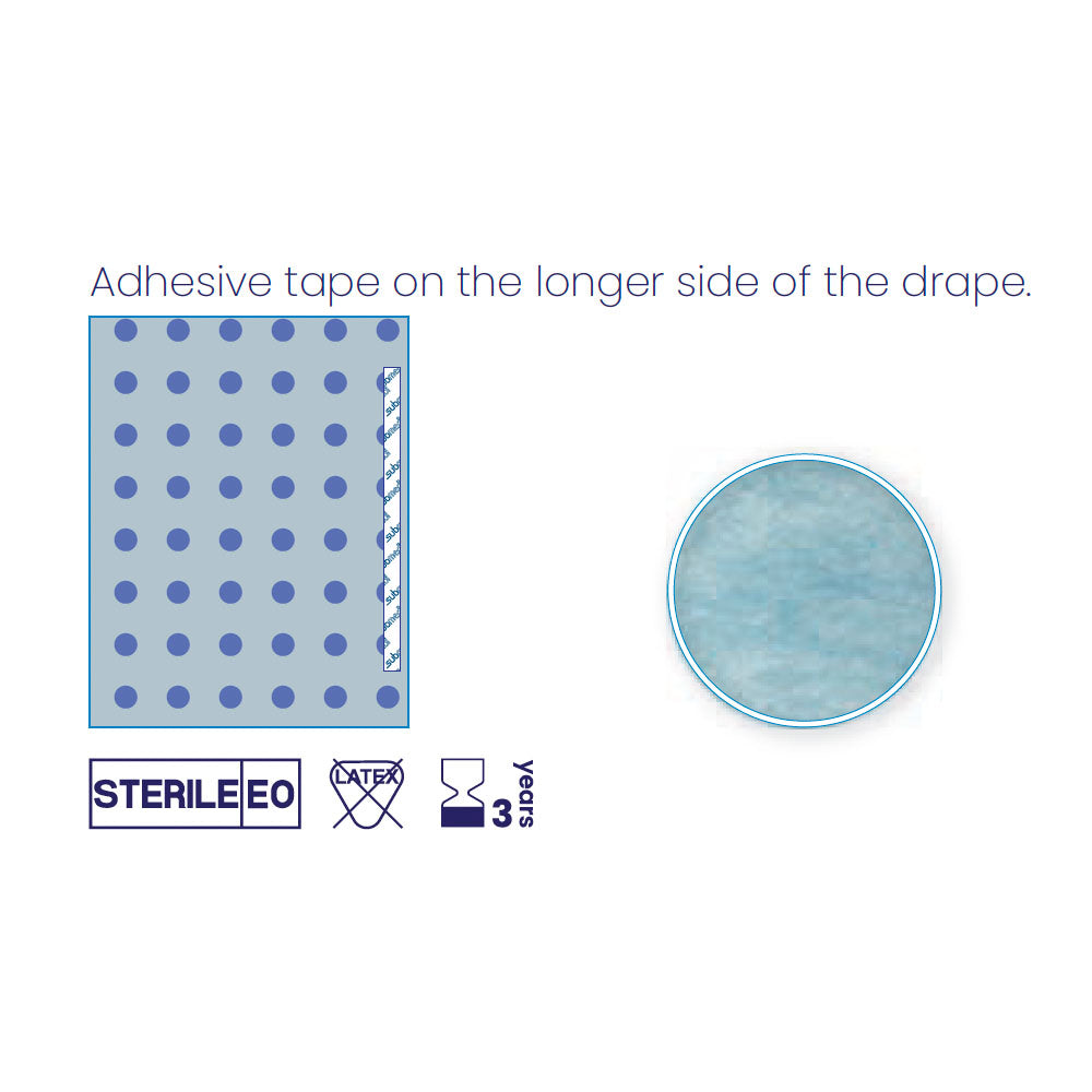 These professional-grade sterile surgical drapes from SUBMED provide a reliable waterproof barrier during medical procedures. Made with a 3-layer construction (polypropylene, polyethylene film, and viscose), they effectively block fluids while remaining soft and comfortable. A strong adhesive strip runs along one long edge for secure, quick fixation to the patient or table. Ideal for minor surgery, wound care, dentistry, and veterinary use. All drapes are individually packed and sterilized (EO gas).