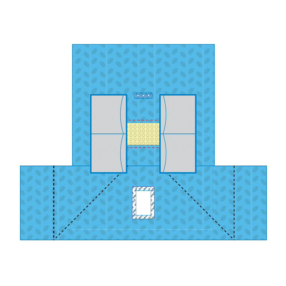 - Lower 15 Ć 20 cm adhesive fenestration with removable instrument pouch keeps tools organized and catches runoff
