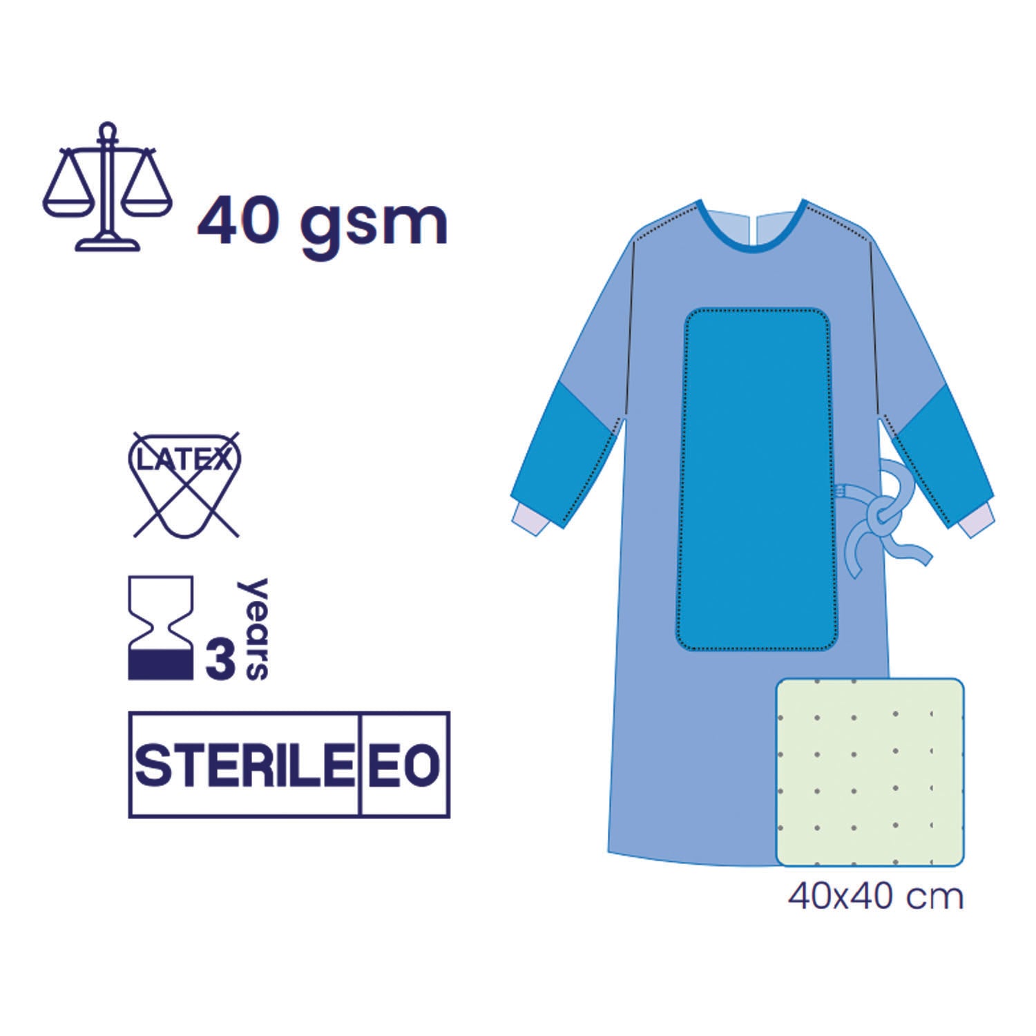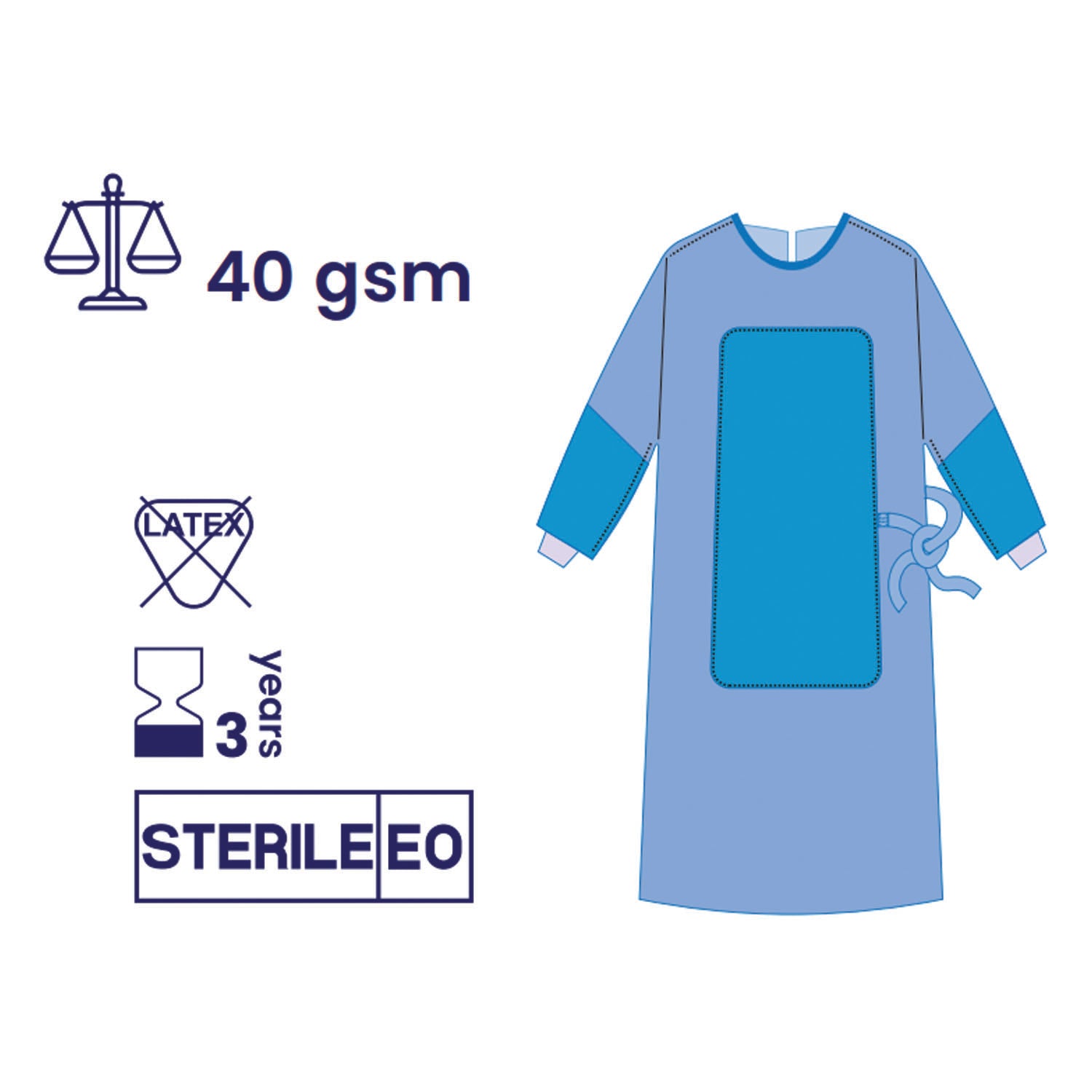 SUBMED Reinforced Surgical Gown - 40 gsm SMS with Absorbent Chest & Sleeve Reinforcement