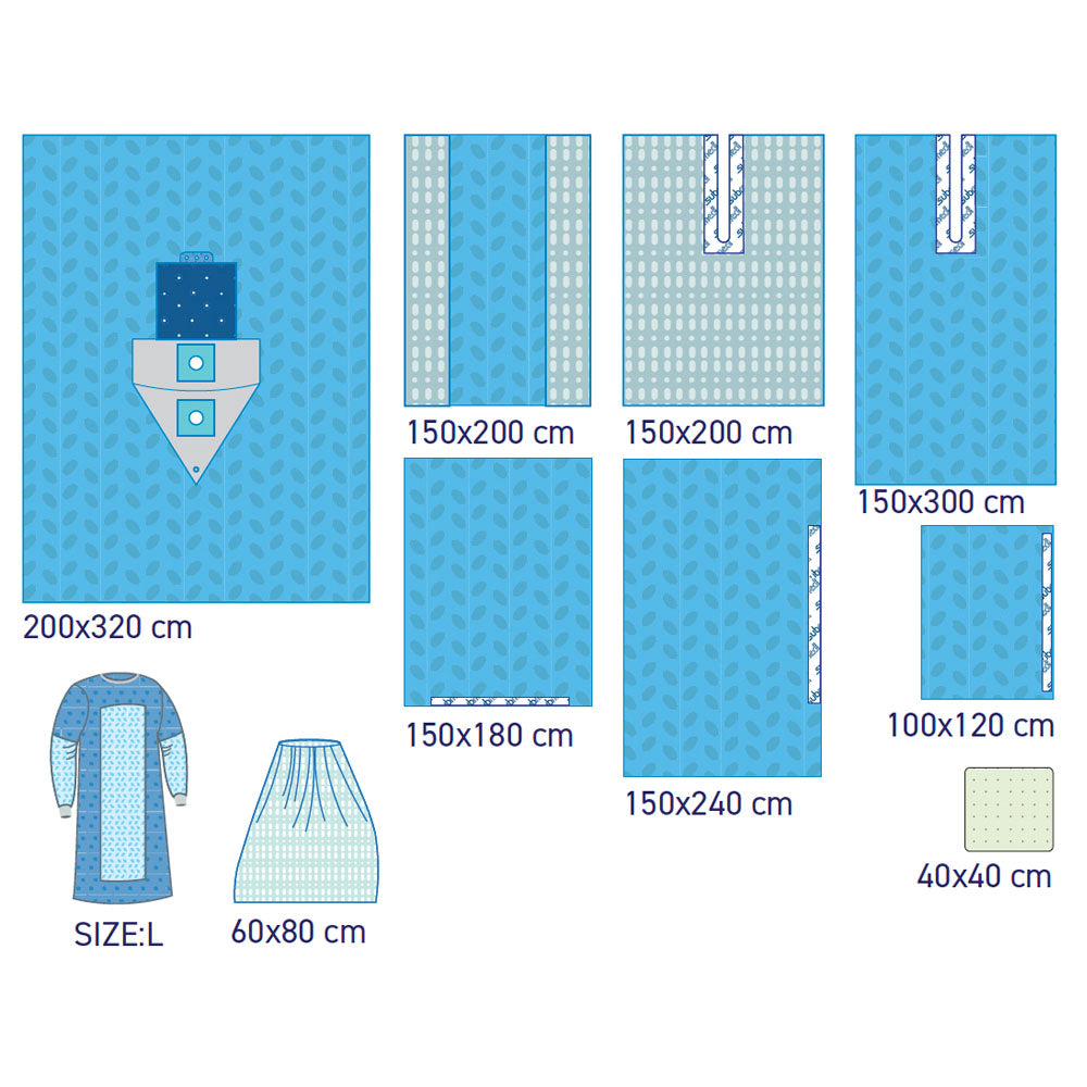 | Arthroscopy Drape | 79 Ć 118 in (200 Ć 300 cm) | 79 Ć 126 in (200 Ć 320 cm) |