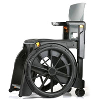 Optional seat overlay that closes the toilet oval opening. Provides a closed seat area for sitting. Black upholstered seat attaches to the hard seat of a chair.